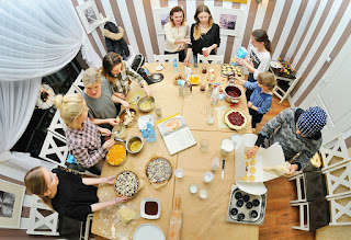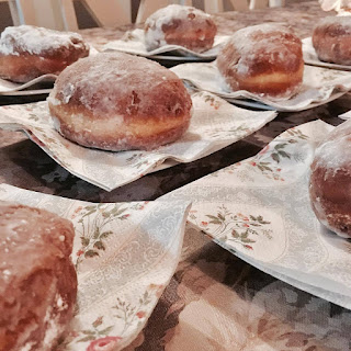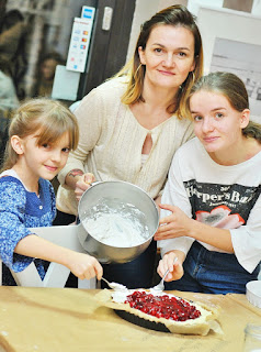 Pączki nadziewaliśmy konfiturami, w które zaopatrzyła nas Beata Mieczkowska-Miśtak pomysłodawczyni i redaktor "Smacznego Kołobrzegu" kołobrzeskiej książki kulinarnej. oczywiście nie zabrakło konfitury z płatków róży, był dżem dyniowo-pomarańczowy, ale również z zielonych pomidorów, który znalazł swoich fanów mimo moich niesłusznych obaw. Mi przypadł do gustu najbardziej z czerwonej porzeczki. Miałyśmy też okazję spróbować od Beatki marchewki z kawą i jestem zachwycona... trudno to opisać słowami, czuję teraz ten smak, taki inny, bardzo przyjemy. Lubię kosztować takie perełki i otwierać się na nowe smaki. Tymczasem odsyłam też Was na bloga do Beatki. http://slowa-i-smaki.pl/