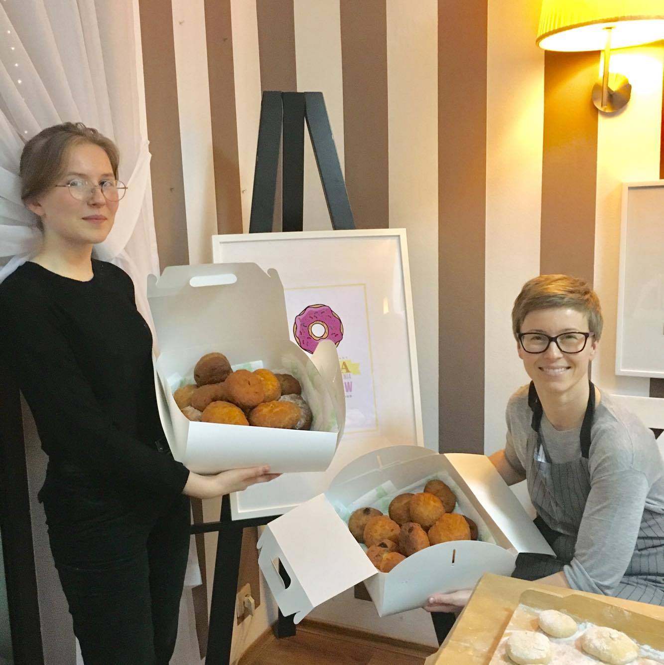 Dziewczyny traktowały to spotkanie, jako zabawę, ale widziałam, że mimo wszystko przyszły z konkretnym zamiarem zdobycia umiejętności lepienia tych pączków. A pączki są jednak pracowite i wymagają troszkę umiejętności. Jedne panie robiły to dla dzieci, inne dla narzeczonego lub męża, każdy powód był dobry.